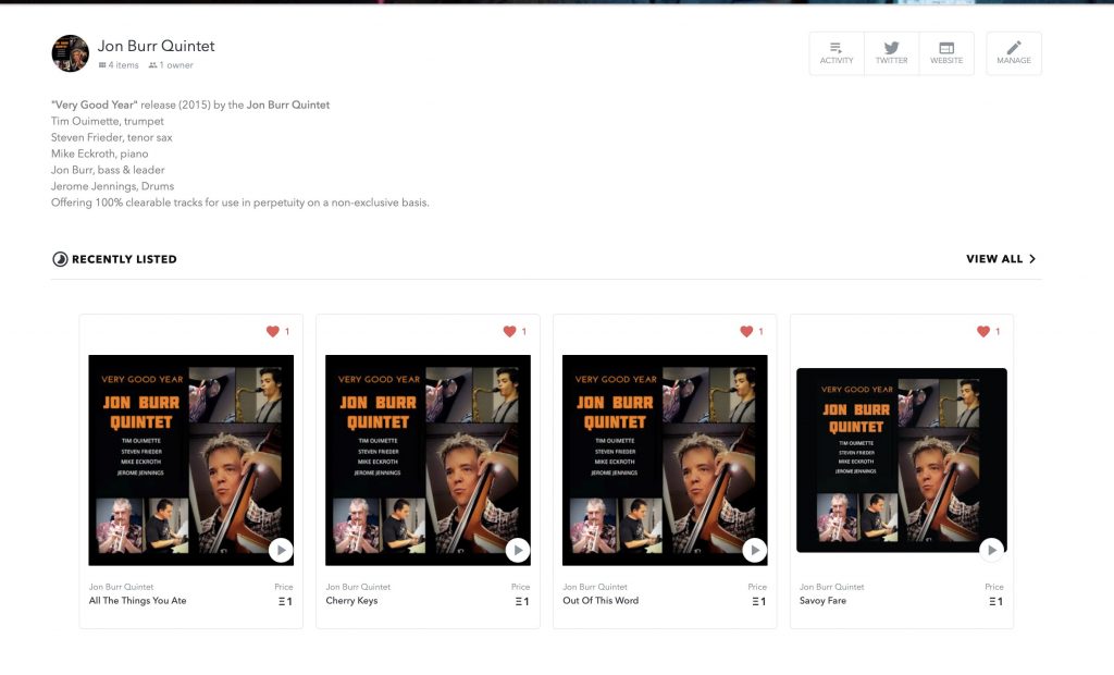The bundle is priced at 4 Ethereum (ETH), and individual tracks at 1 ETH each.